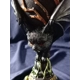 Decorated with a black vampire bat additional detail depicts branches as if in flight and has a beautiful green and gold leaf decoration on the base.