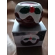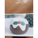 The candle holder is cream and brown in colour and designed to look like a christmas pudding with sauce and a holly leaf design finishing decoration