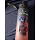 Amusing drinks flask with Venom and Spiderman caricature detail, made from durable plastic.Background colour is graduated from blue down to a dusky pink colour.