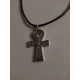Made from stainless steel this ankh is decorated with hieroglyphic styled detail and is hypo allergenic , the figure measuring approx 4 x 3 cm ( 1 x 1 1/2 inches) and hangs on black pliant cord choker with secure stainless steel lobster clasp and 5cm extender chain.Total choker length is 42cm (16 1/2 inches) and fits a maximum neck size of 47cm (18 1/2 inches) when incl extender chain,