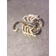 A scorpion design pin brooch with black body, tail and pincers and gold coloured legs