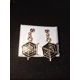 Gold and black enamel cobweb shapes on gold coloured stainless steel studs with butterfly clip backs