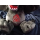 Details include embroidered red eyes ,felt teeth and laws, and soft velour ears. Embroidered all seeing eye on his torso
