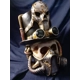 cream coloured skull decorated with aestetically aged silver, gold and black detail.